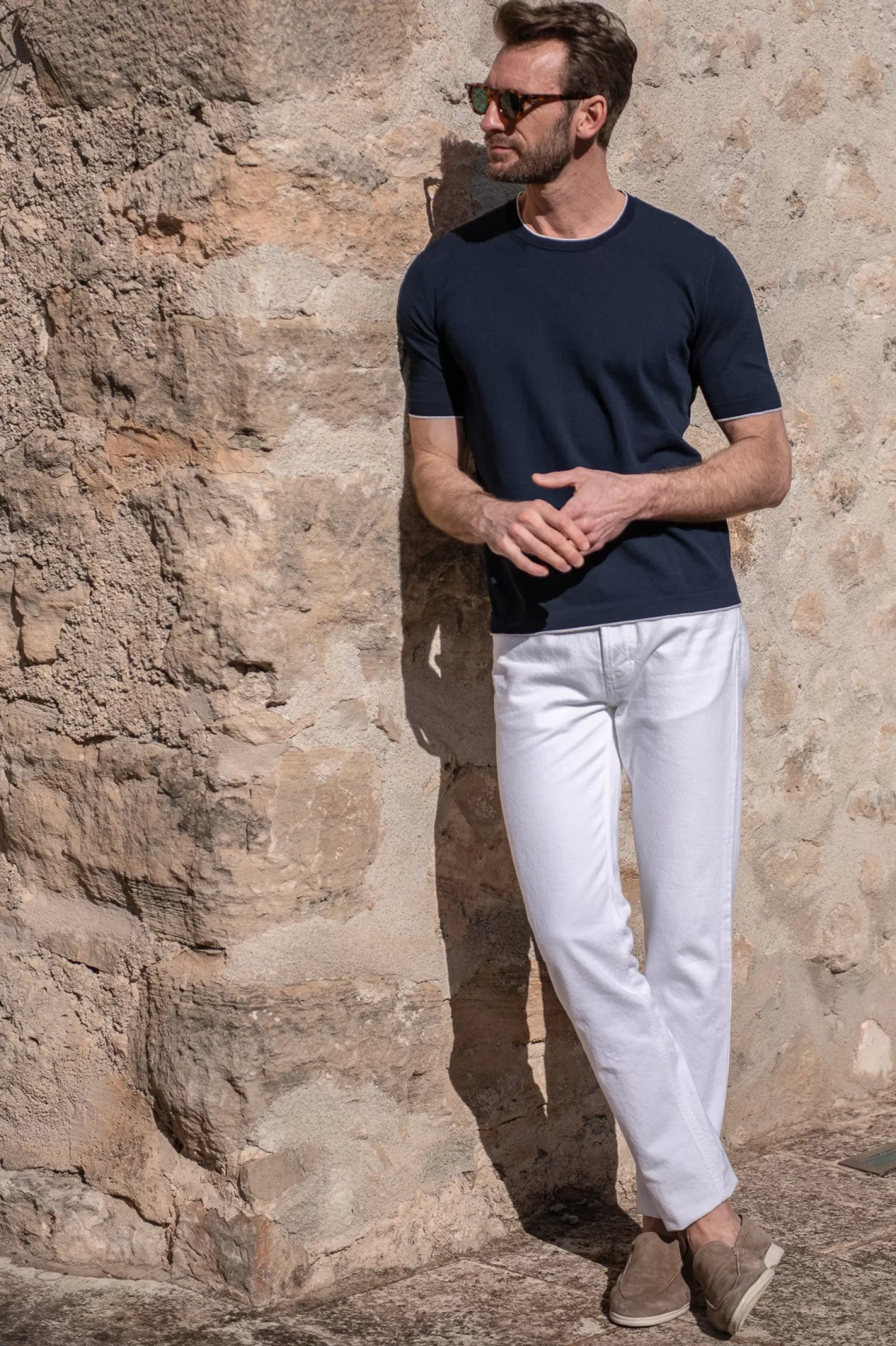 Best Sale Pini Parma T-shirt In Maglia – Made In Italy Blu