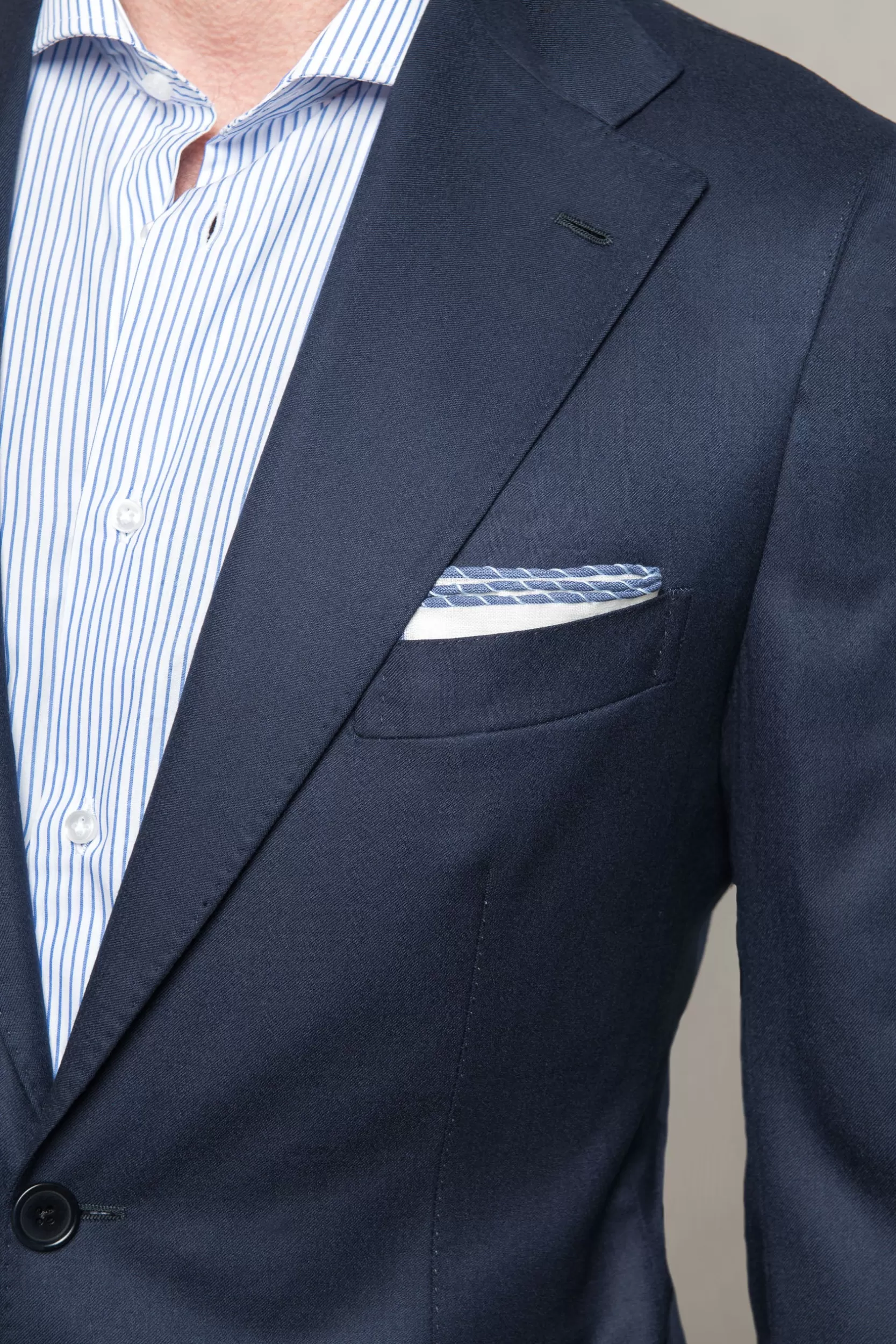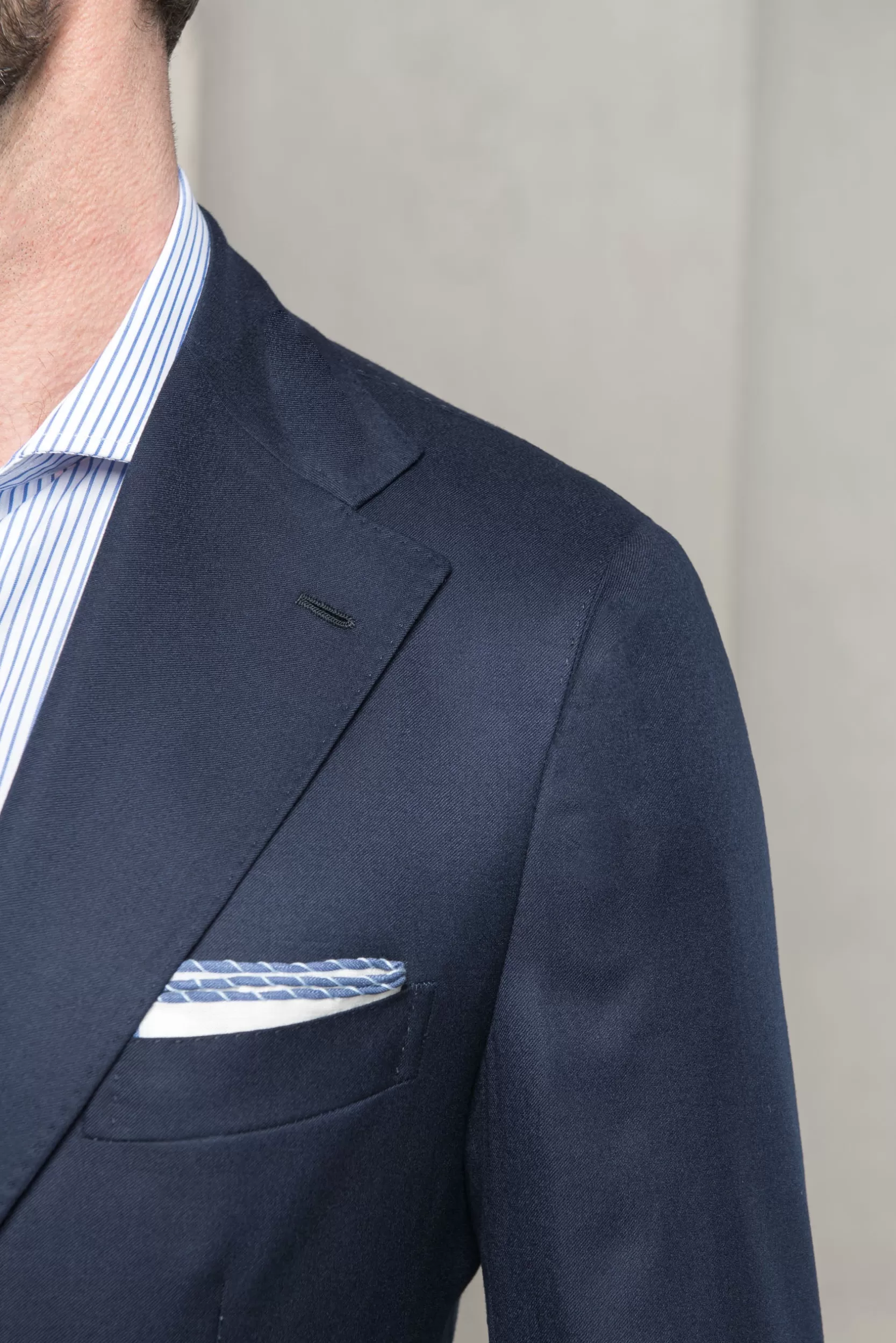 Costruzione non strutturataRever classico, larghezza 9,5 cmSpalle naturali (senza imbottitura)”Barchetta” chest pocket …