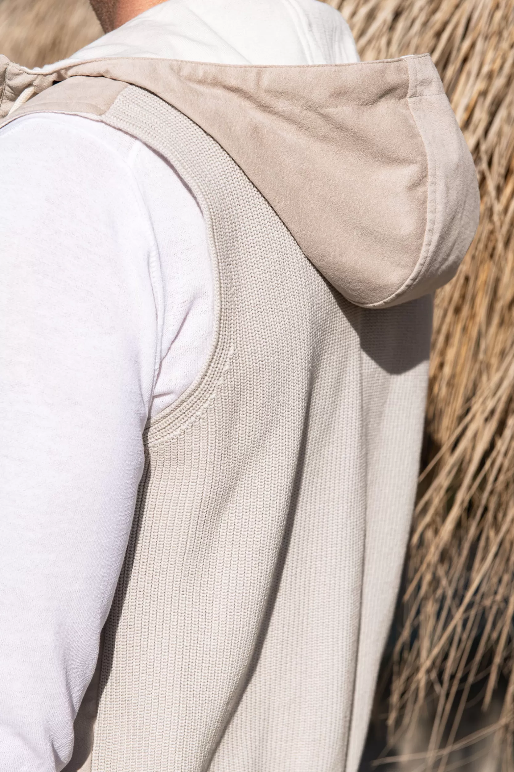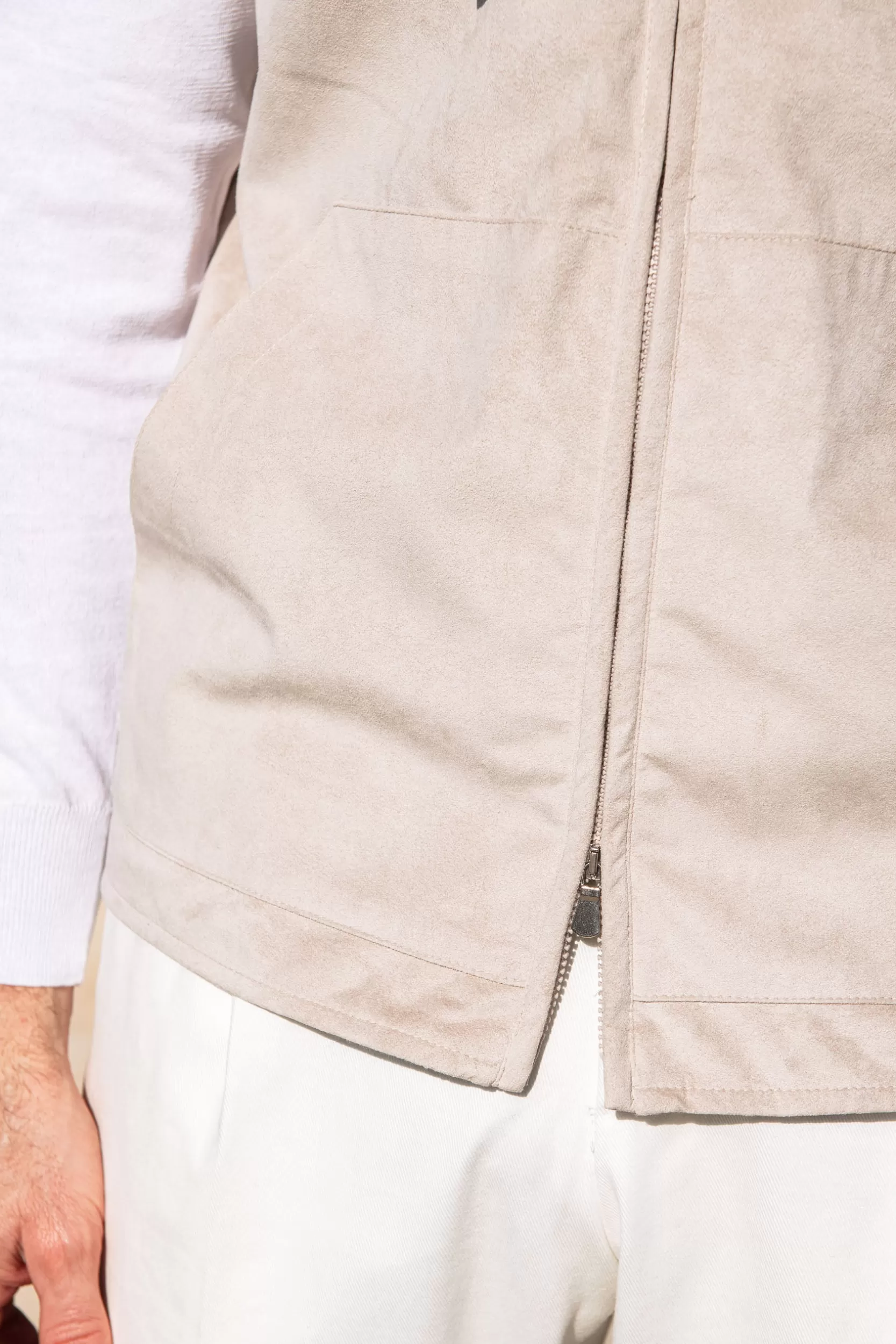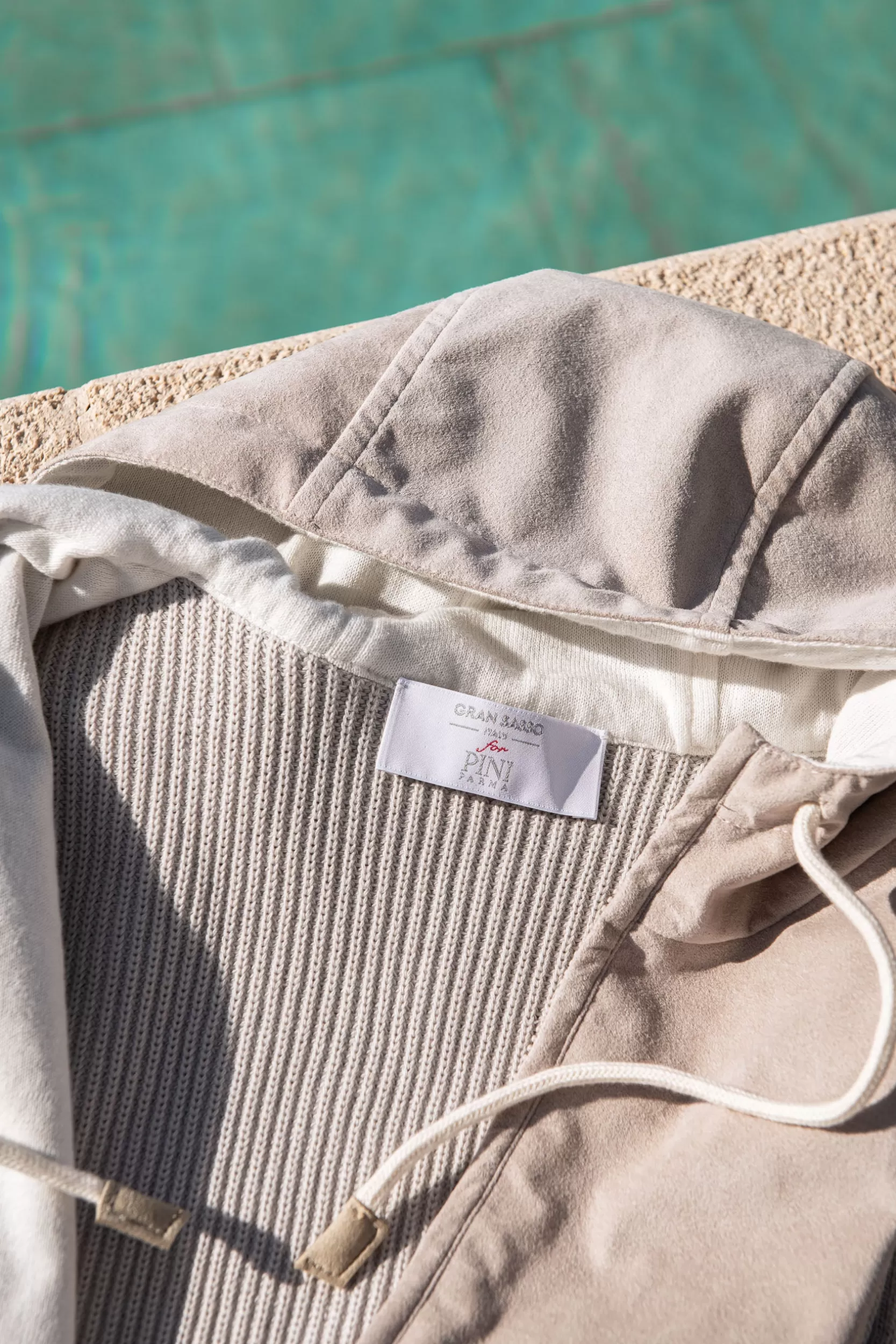 Fashion Pini Parma Gilet Con Cappuccio In Alcantara Sabbia – Made In Italy