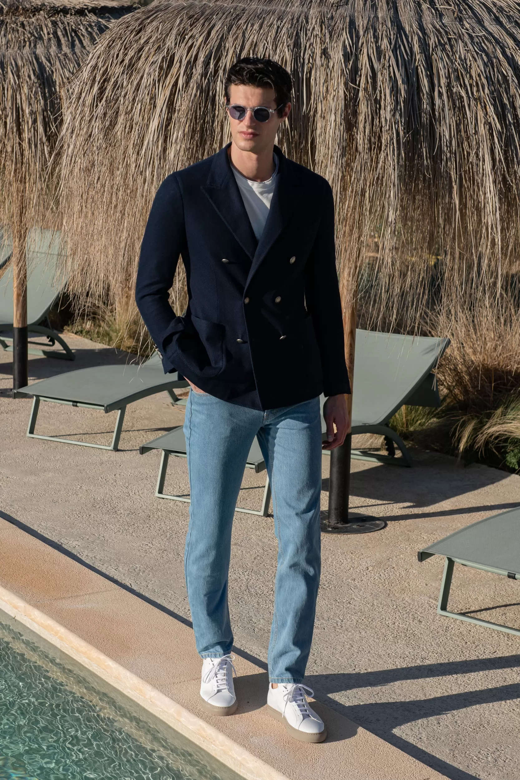 Costruzione non strutturata (no tela)Revers a lancia, larghezza 10,5 cmSpalle naturali (senza imbottitura)”Barchetta” ch…
