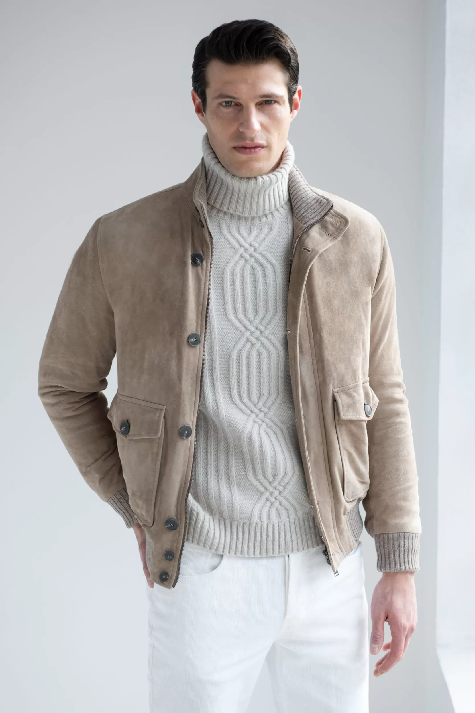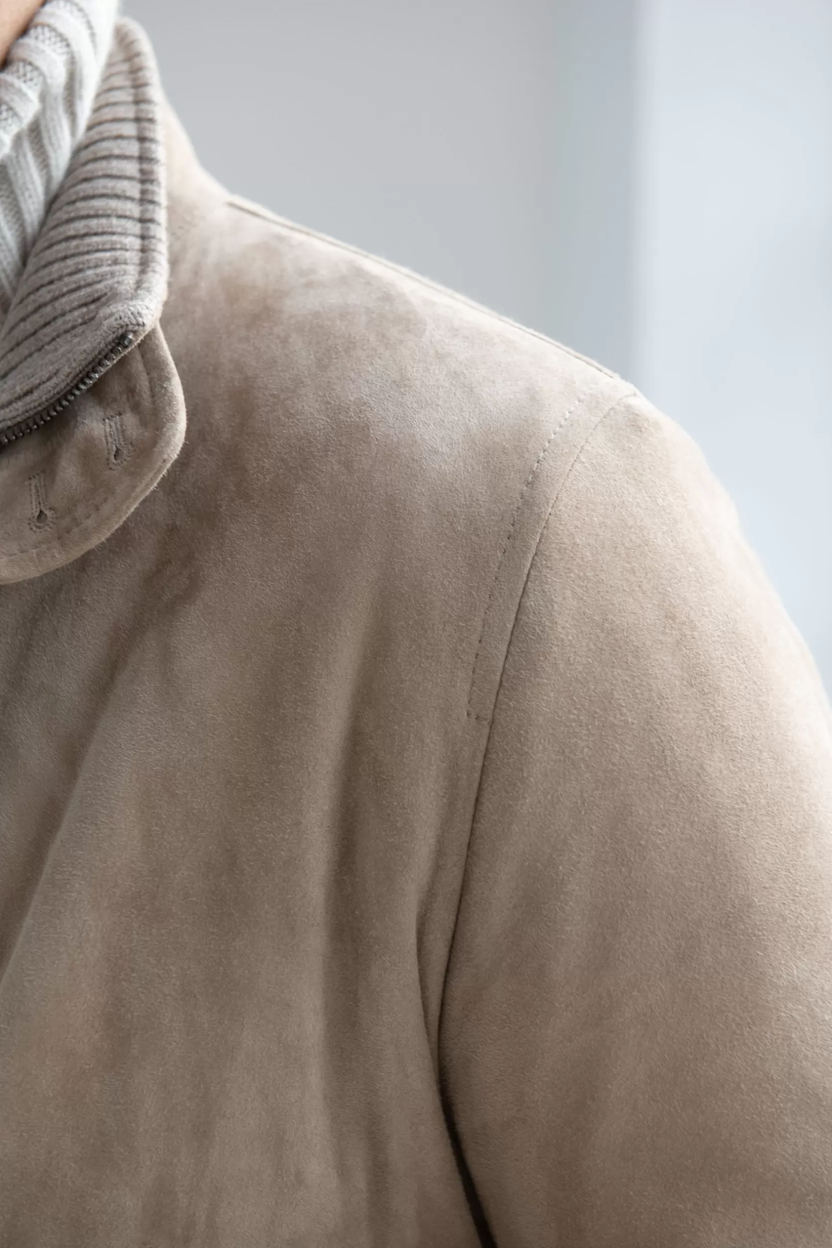 Hot Pini Parma Bomber In Suede Beige – Made In Italy