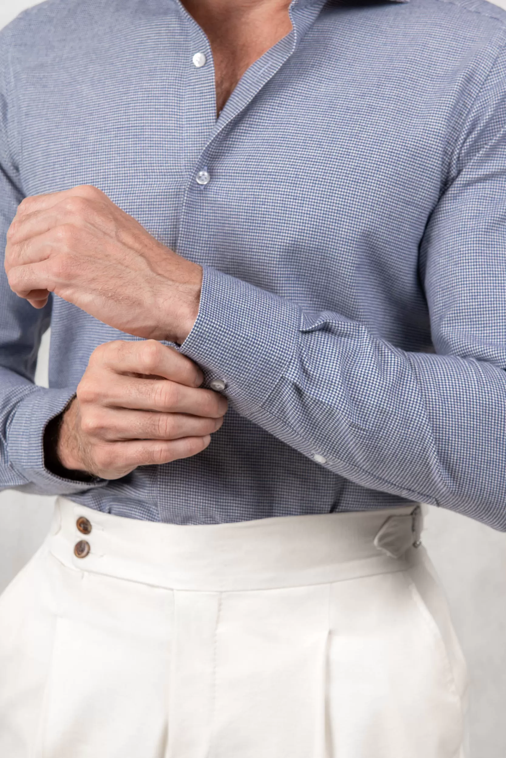Colletto WindsorCuciture francesiTendicollo cuciti”Zampa di gallina” buttons stitchingPolsino rotondo ad un bottone…